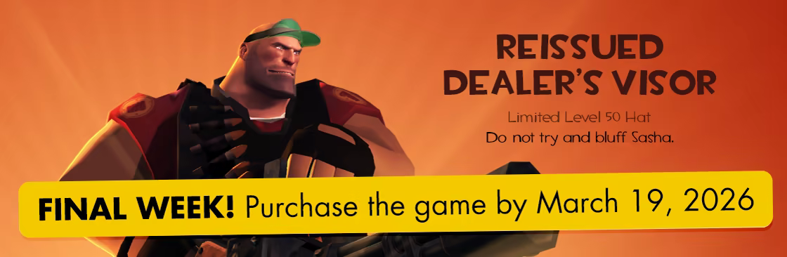 Purchase Poker Night at the Inventory by the end of March 19, 2026 and receive the Reissued Dealer's Visor in Team Fortress 2. You can find more info about TF2 unlocks in Poker Night in the des...